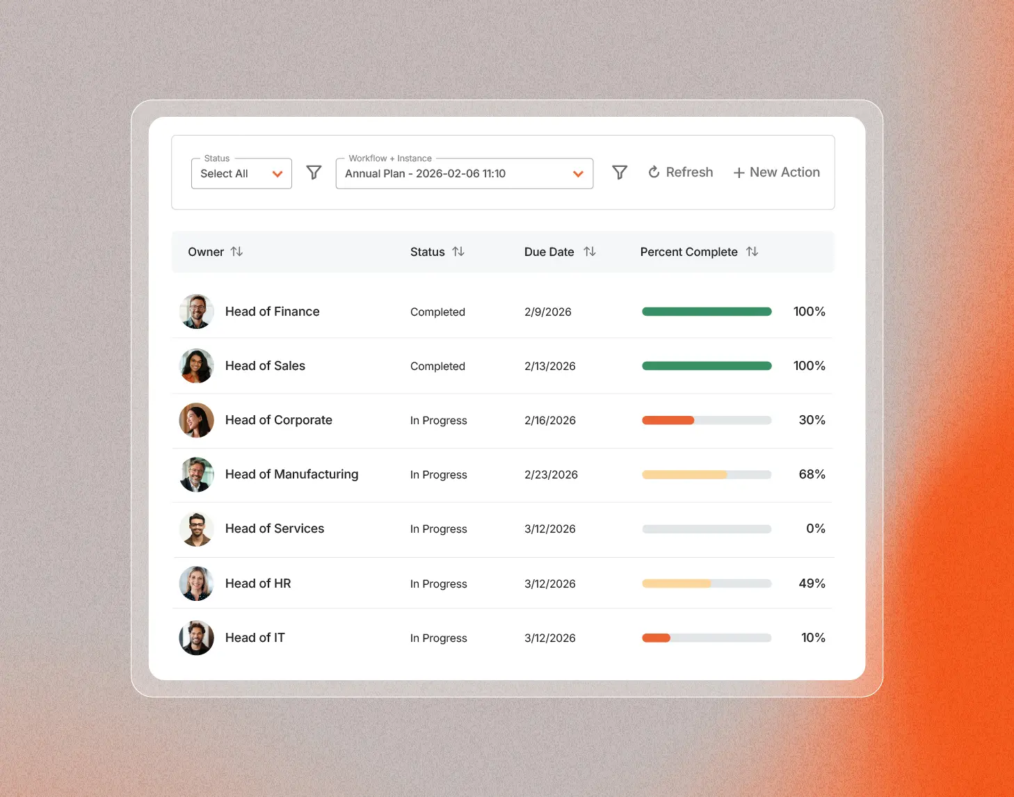Bridge the execution gap with built-in accountability that tracks specific actions, owners, and impact in real time.