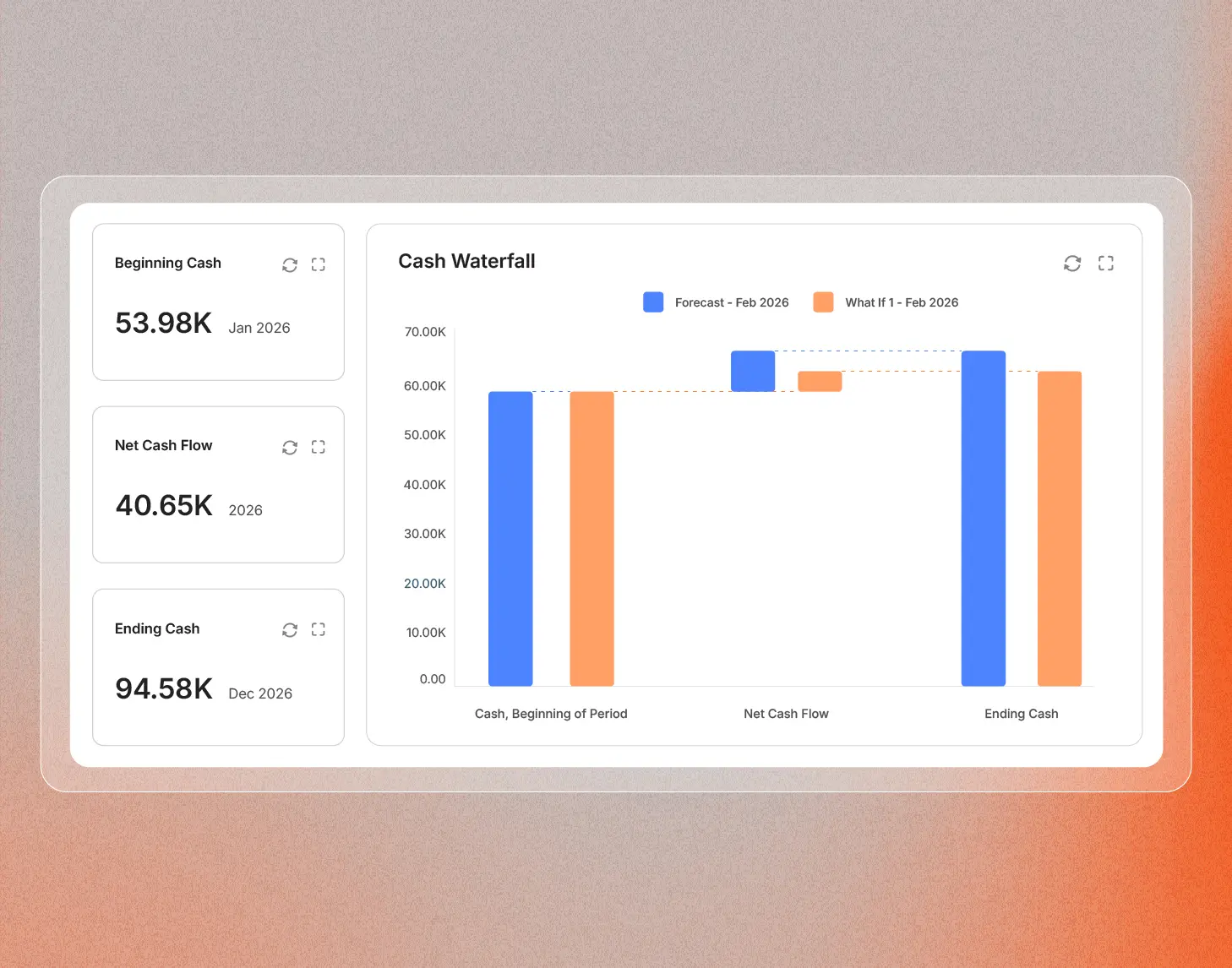 See the financial impact of every decision instantly with embedded BI and visual planning.