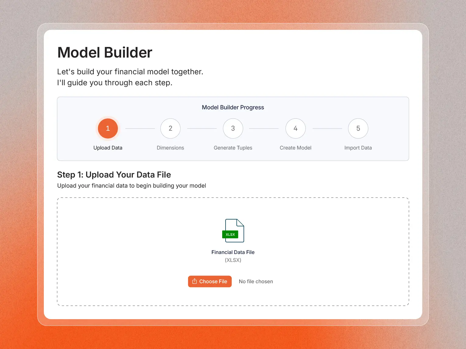 Turns raw files into a live, structured financial model, detecting dimensions, hierarchies, and loading data in minutes.