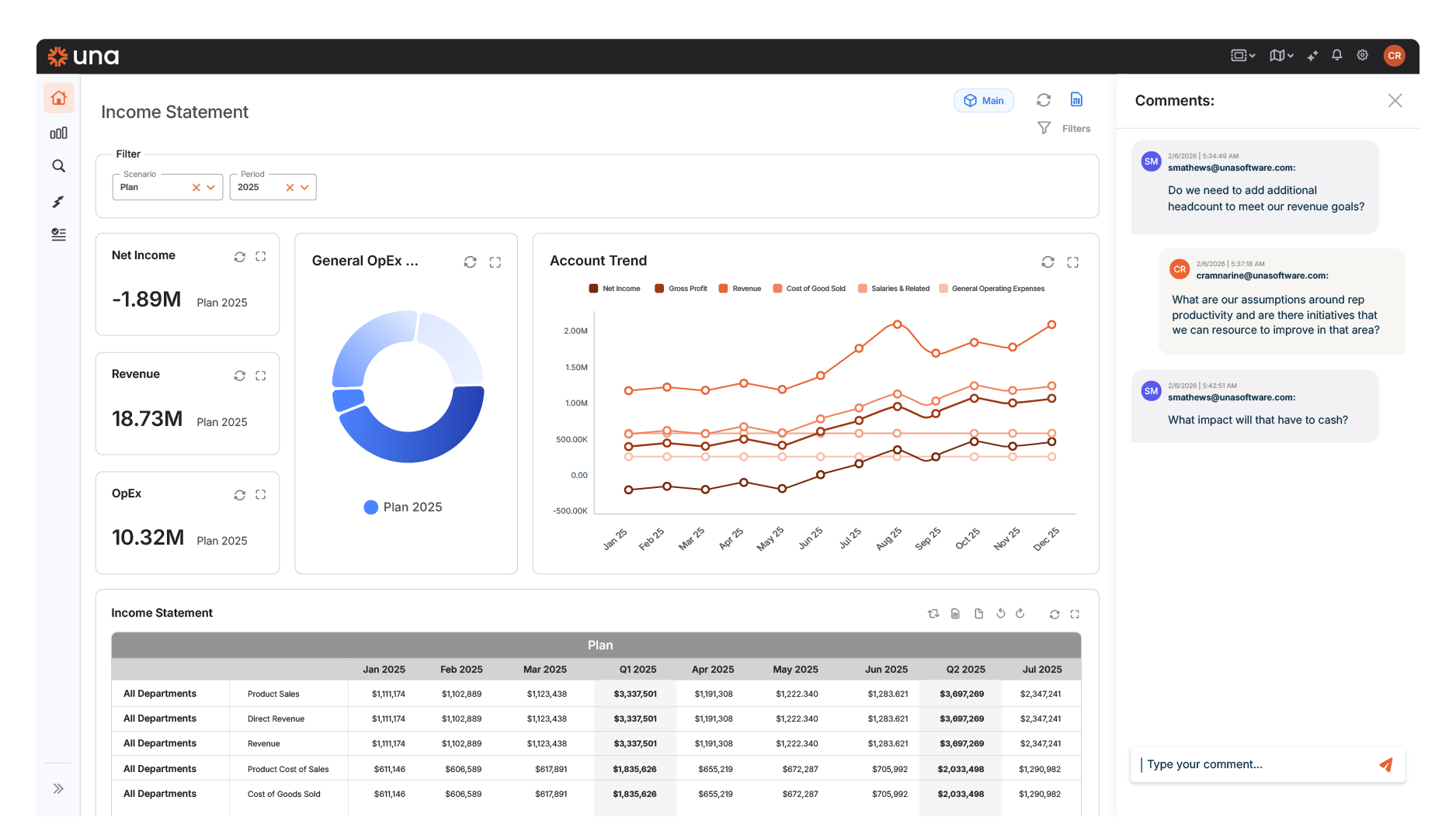 Ready to take control of your budgeting, planning, forecasting and reporting? Schedule a demo and see how Una’s financial planning & analysis software can work for you.